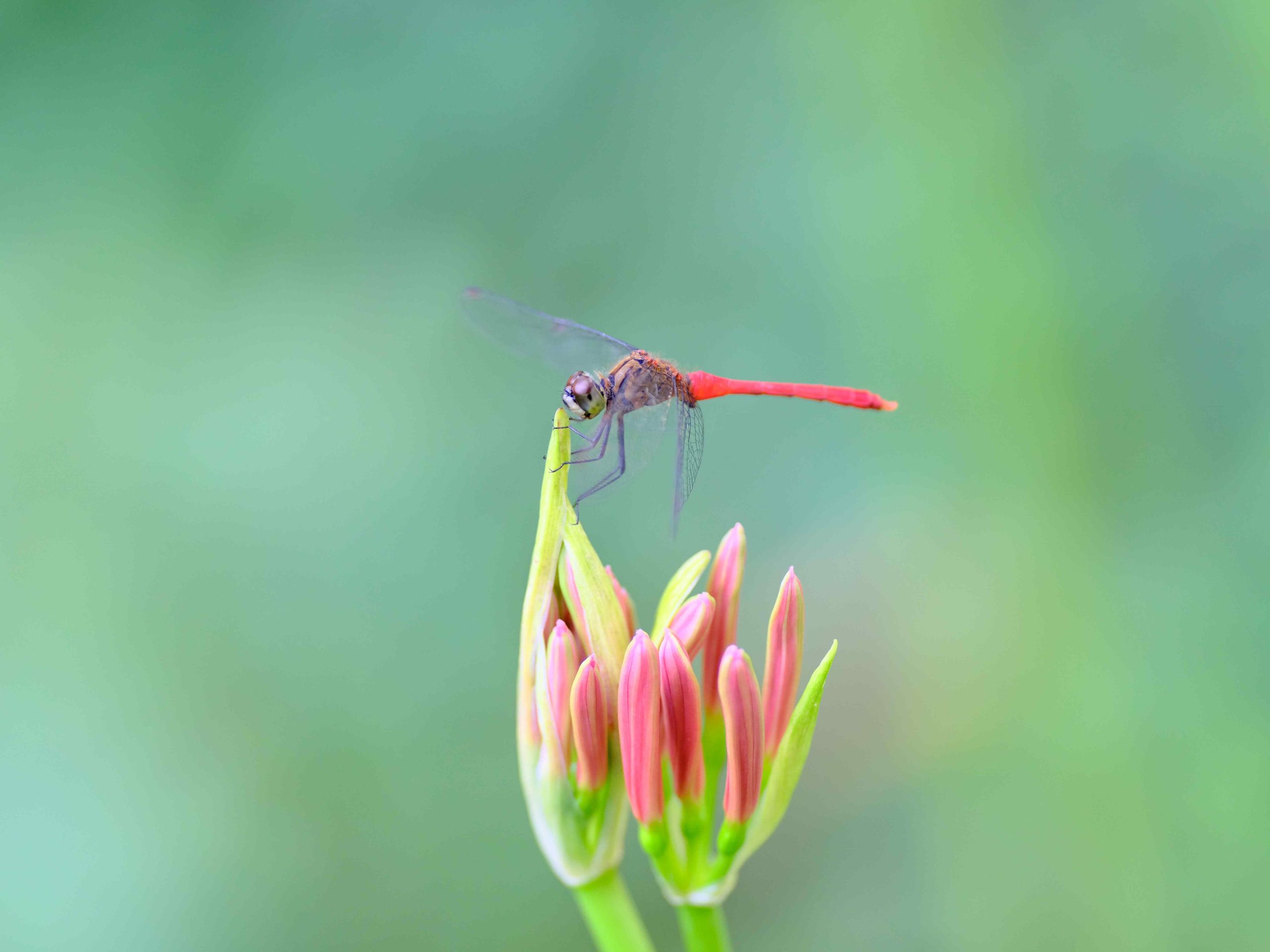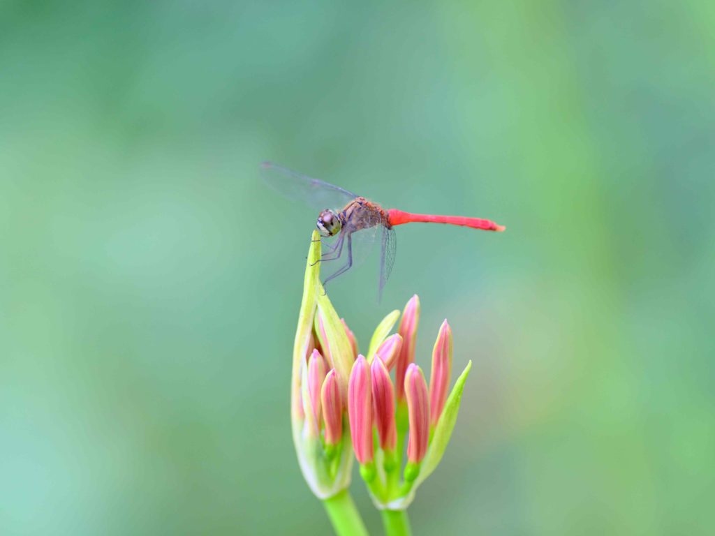 ヒガンバナのつぼみに赤とんぼ。