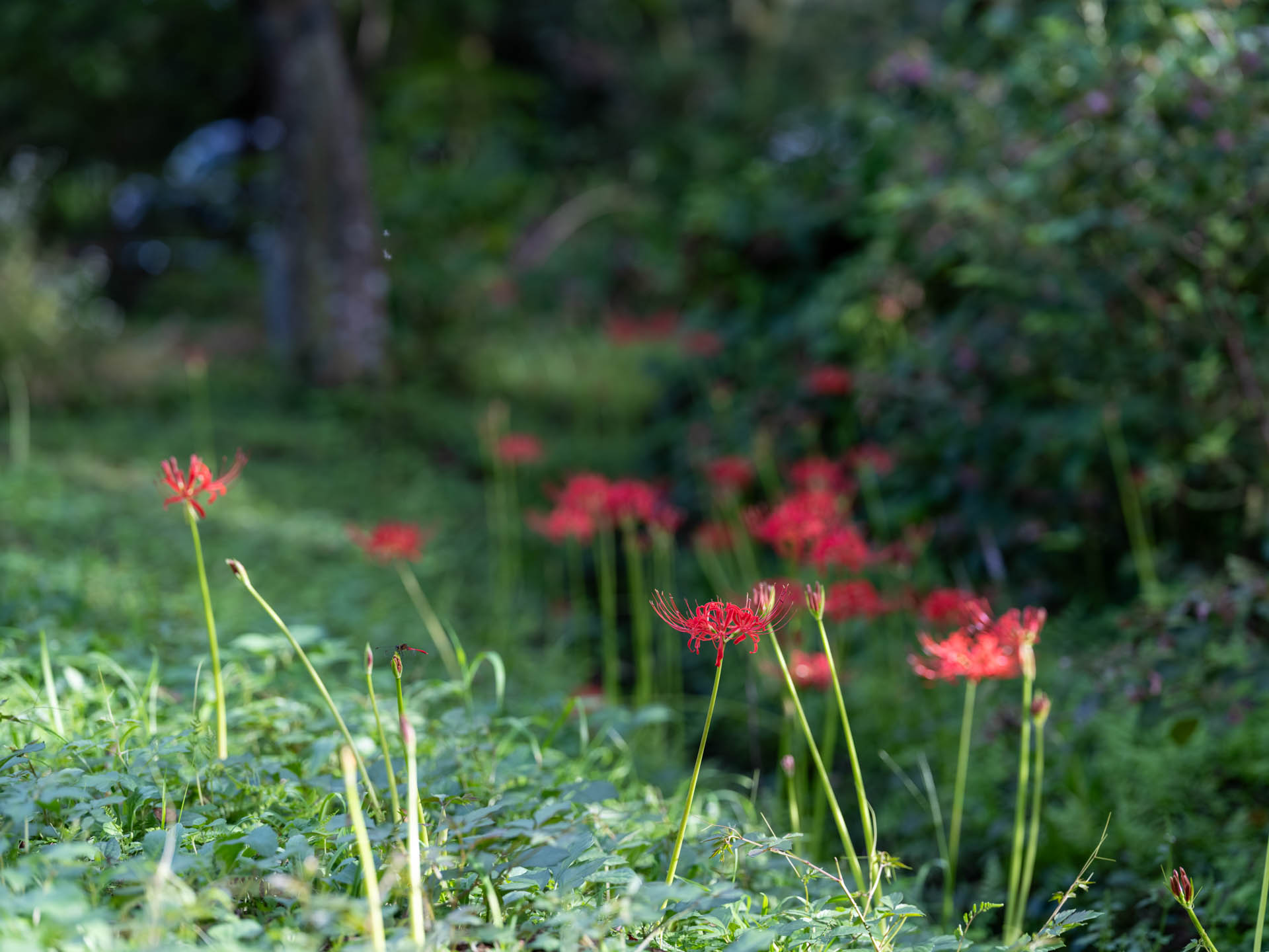 今年は特に暑かったので、ヒガンバナはまだかも・・と思っていたところ、咲いていました。