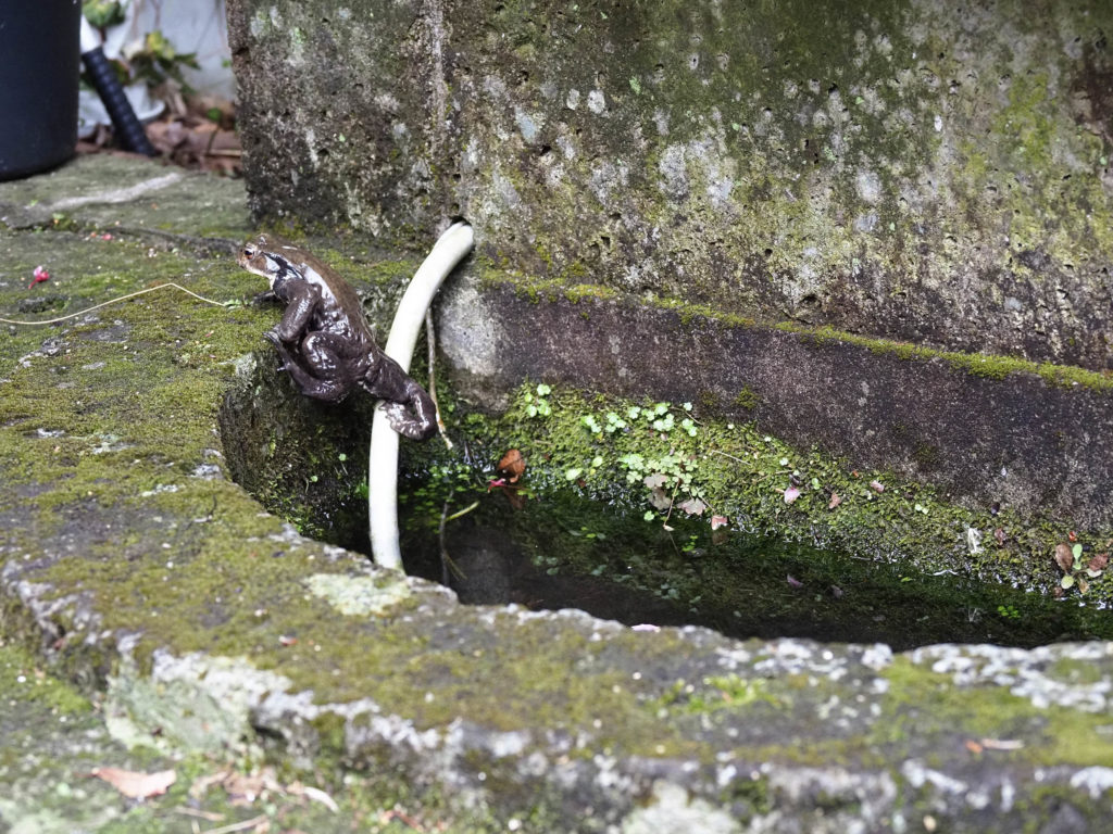 ヒキガエルは見えなくても、庭のどこかにいるのでしょう。