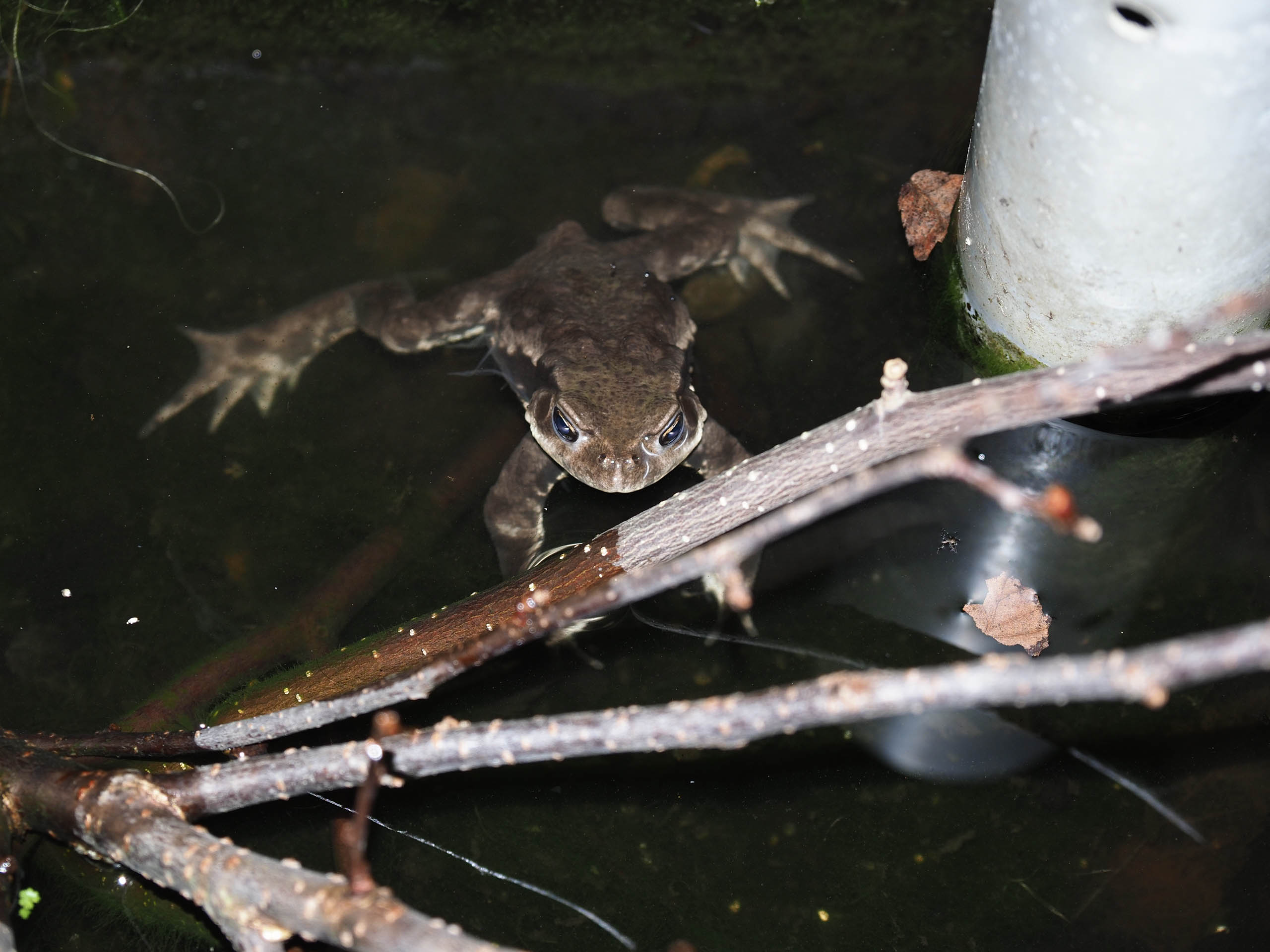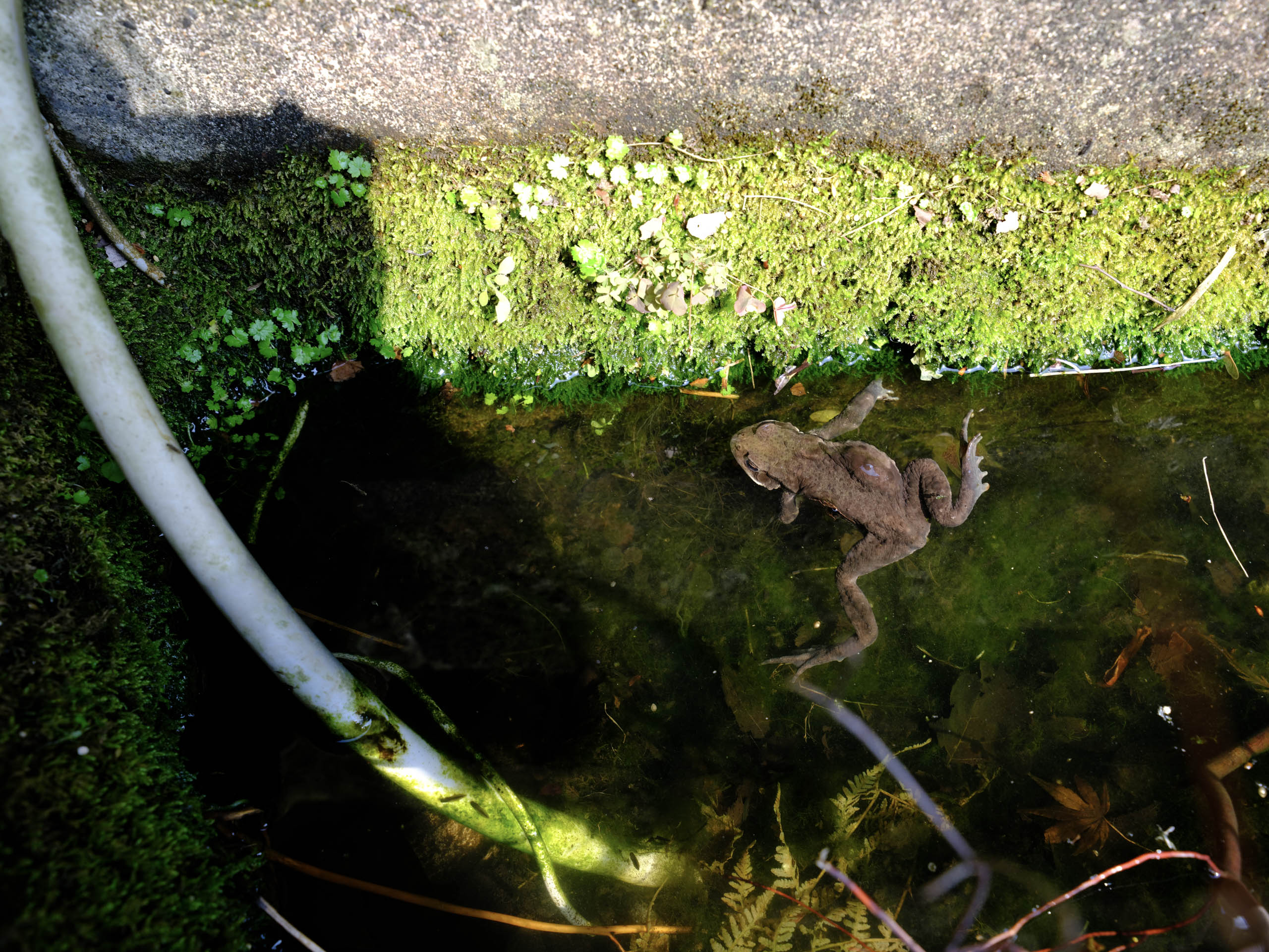 ヒキガエルは3月25日に現れて、1週間庭の水辺で過ごしたあと、昨日また庭のどこかに戻っていきました。毎年1週間くらい姿を見せたかと思うと、まるで解散したかのようにいなくなります。