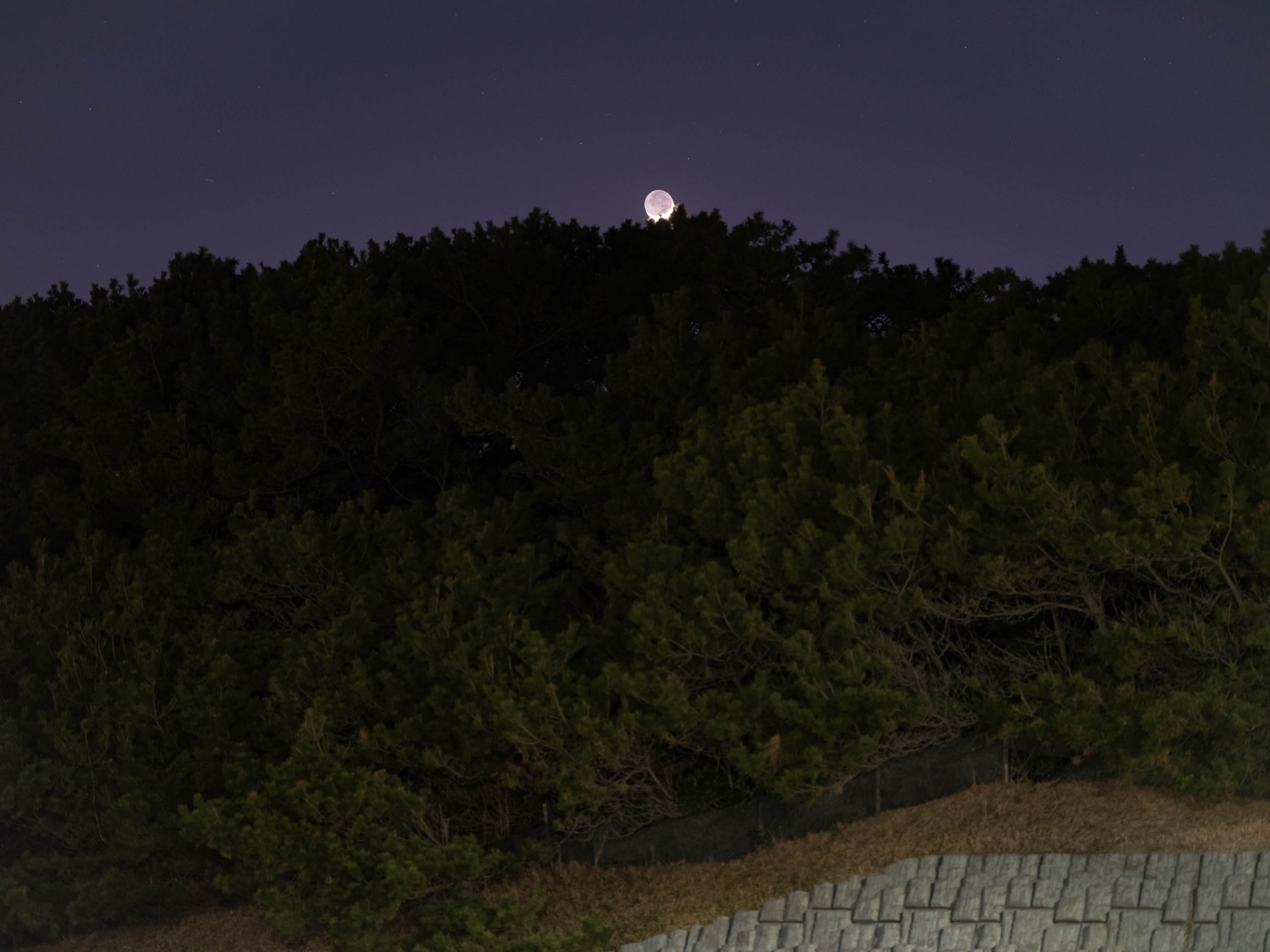 大洗に着いたのは、日が沈んだ直後。まず月。