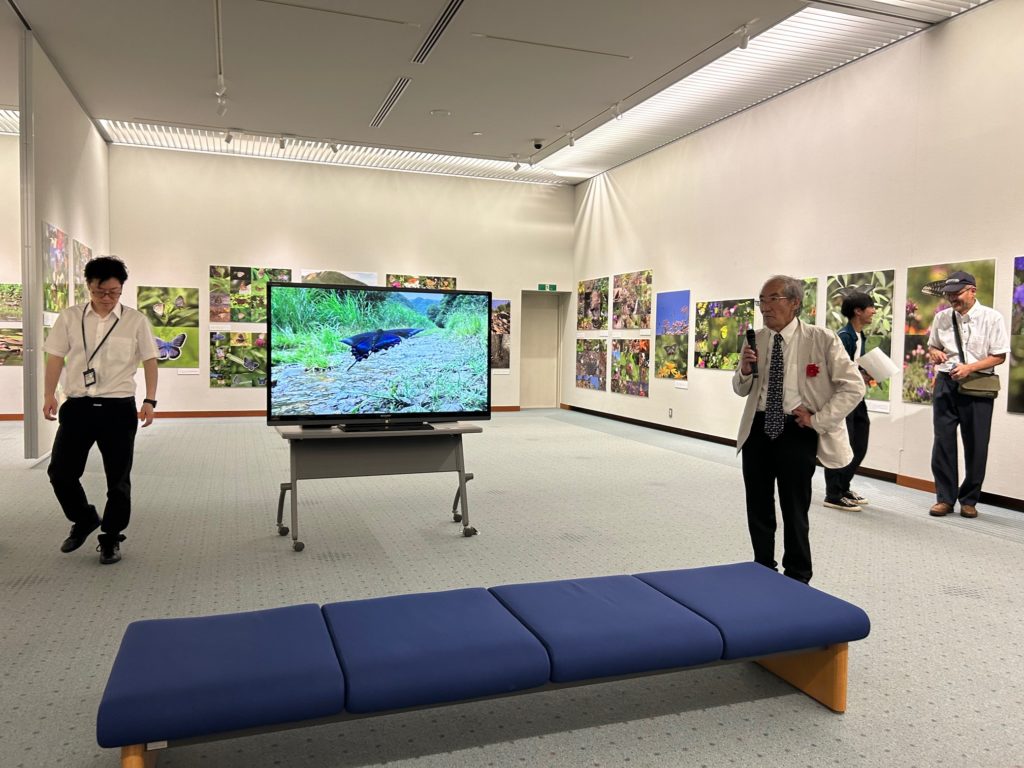 ギャラリートークでは、温暖化のせいか、チョウの生息域が変わってきていること、ちょっとした環境の変化や心ない採集者によってチョウは減ってしまうとのことで、目的のチョウを見つけることの難しさを感じました。