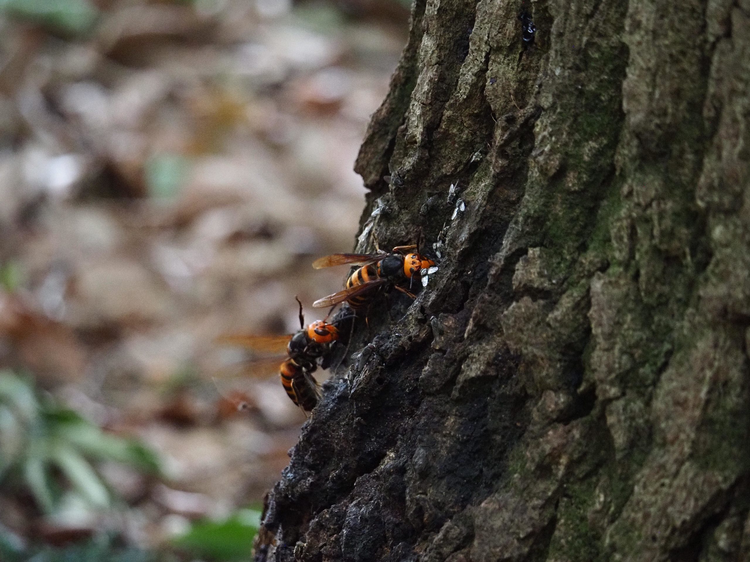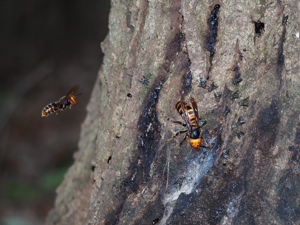 スズメバチ同士戦っていたり、活発です。