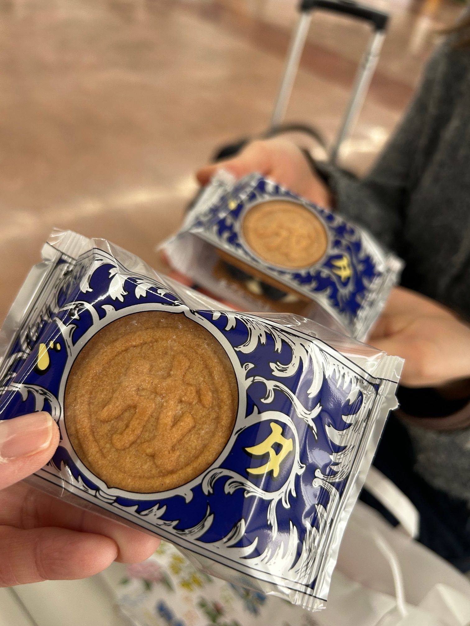 いつもの早朝便が無く、待っている間に、こんなクッキーを食べました・・・と思いきや・・・。