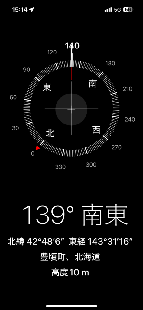 スマホのコンパスでおおよその方角と見える景色を確認。