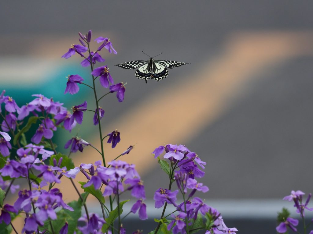 モンシロチョウより少し小さく、チラチラとホバリングするように飛んでいるので、写しやすいチョウです。