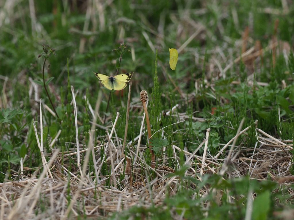 タロを散歩させるために鶴田沼へ。これはモンキチョウ?とキチョウ。