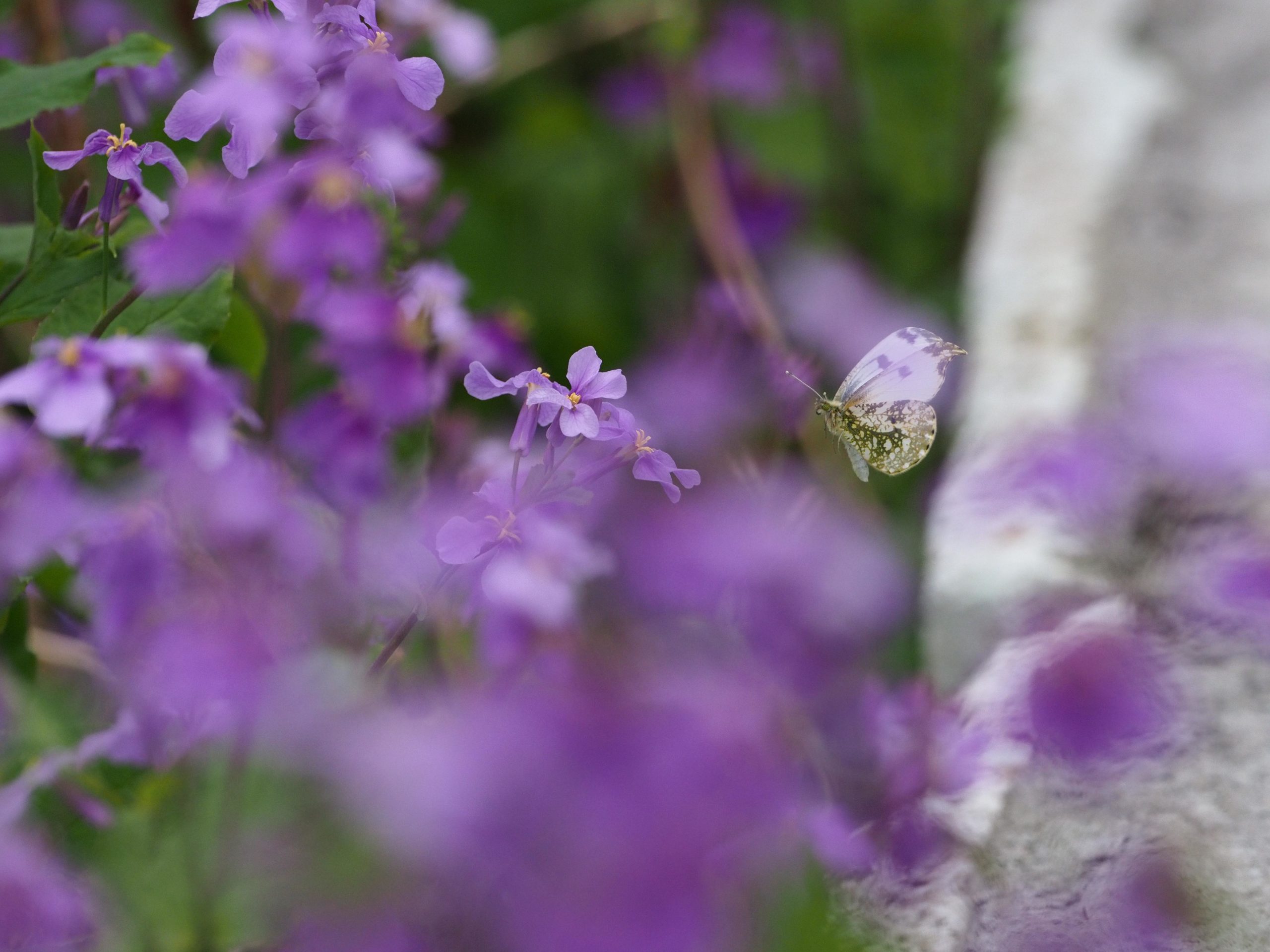 昨日、うちの庭にツマキチョウがやってきました。このチョウは、たくさん飛んでいると思うのですが、春に1回だけ成虫になるだけなので、今の時期しか見ることができません。なので、ボケっとしていると見ないで終わってしまいます。