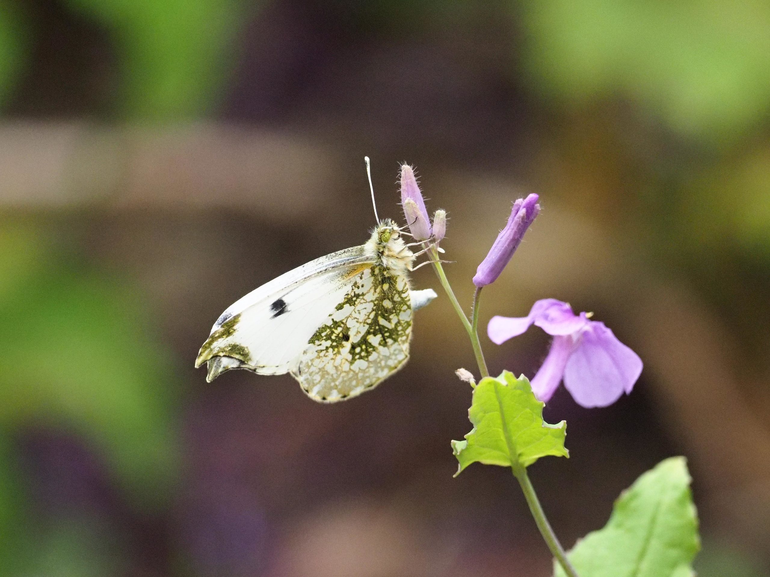 翅の表は白いので、飛んでいるときはモンシロチョウと間違えそうな感じ。