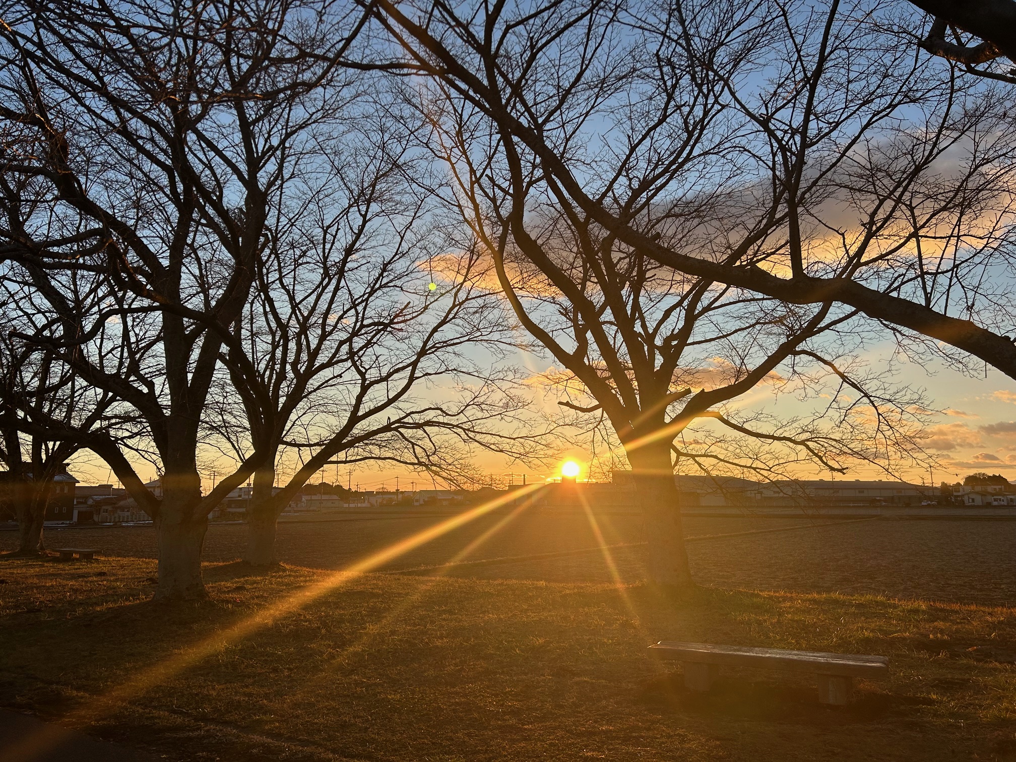 後ろを向くと、太陽が沈むところ。